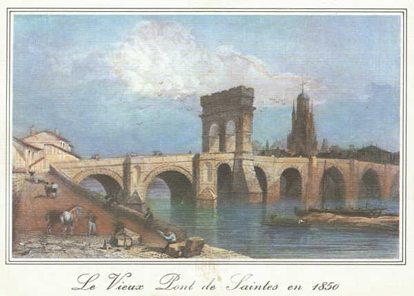 Lo pònt permetiá de passar la Charanta en arribant vèrs Sentas per la Via Agrippa quand veniatz de Lion (Lugdunum). Tre l’Edat mediana, ambe l’elargament de la ribiera, l’arc si trobèt au mitan dau pònt luega d’èstre a l’entrada. Quora lo pònt venguèt dangeirós au sègle XIX, siguèt destrusit e l’arc siguèt mudat a sa plaça actuala, en riba de Charanta.