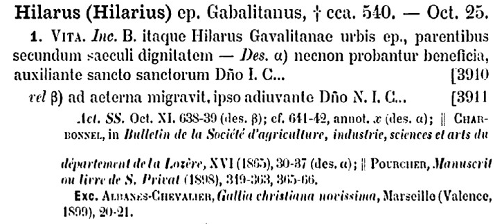3 Sant Privat de Mende, martir dau sègle III. Tot es discutit au subjèct d’aquel òme: sa qualitat d’avèsque e mai la dat vertadiera de sa vida, mai son culte es establit dau temps d’Ilari.